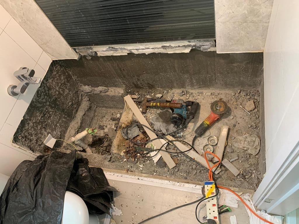 The building was about six years old, and the bathtub was leaking. The owner decided to disassemble the bathtub and turn it into a rain shower. The owner decided to use VALUE to solve the problem of water leakage!